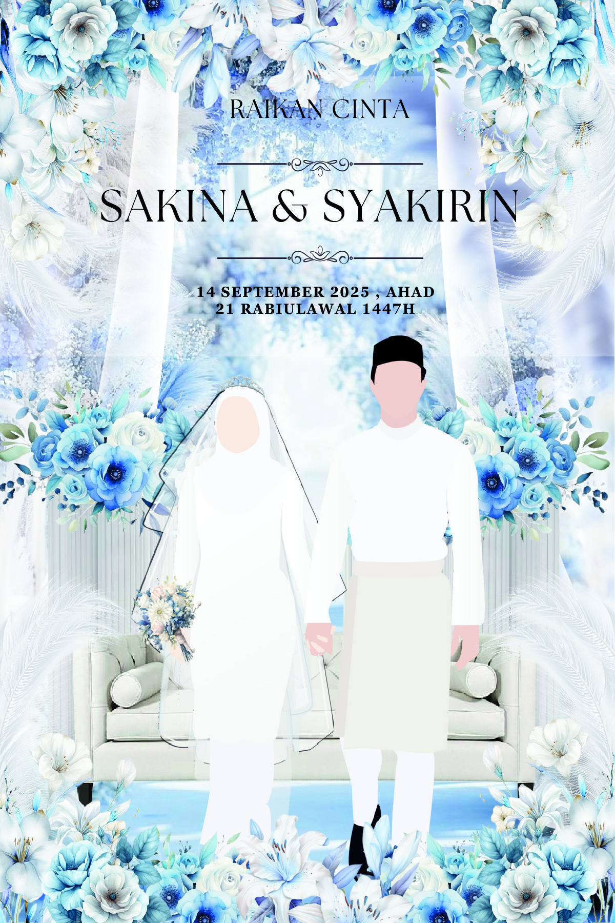 Jamuan Makan 11.00 Pagi - 4.00 Petang Ketibaan Tetamu 11.00 Pagi Bersanding 12.00 Tengah Hari Majlis Bersurai 4.00 Petang